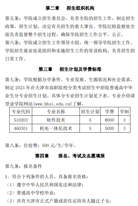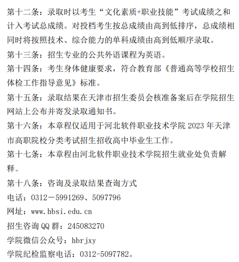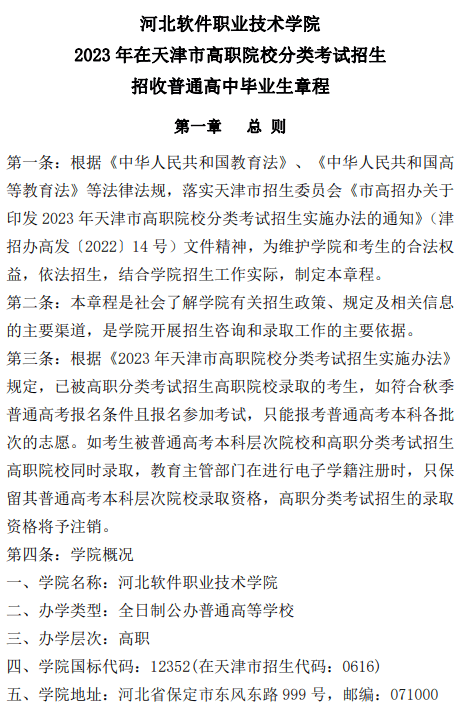 河北软件职业技术学院2023年天津市高职分类考试招收普通高中毕业生招生章程